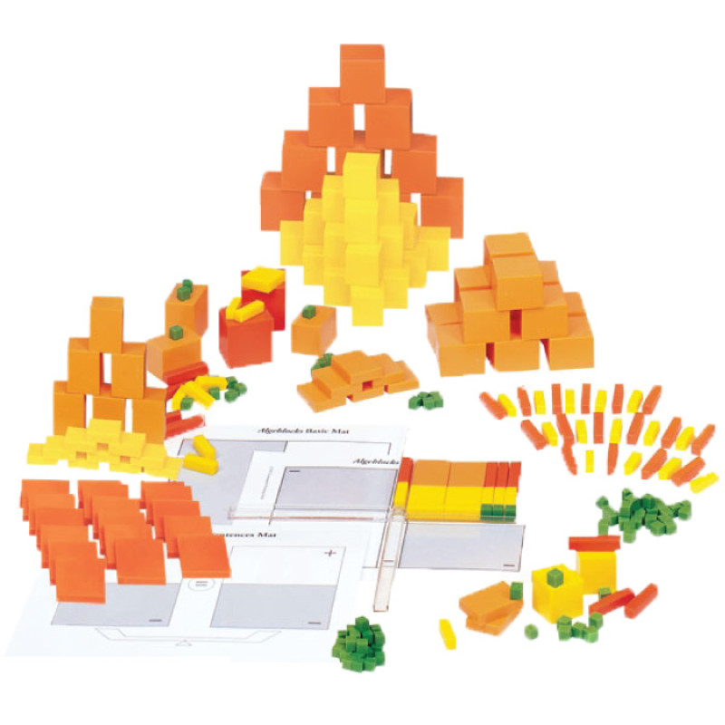 These are 3-dimensional manipulatives with the objective of providing hands-on approach to the complex and abstract concepts in algebra. This set provides 12 students with 399 blocks,36 mats (12 of each type) , 12 factor tracks and an activity guide to explore algebra concepts. Packed in a storage container